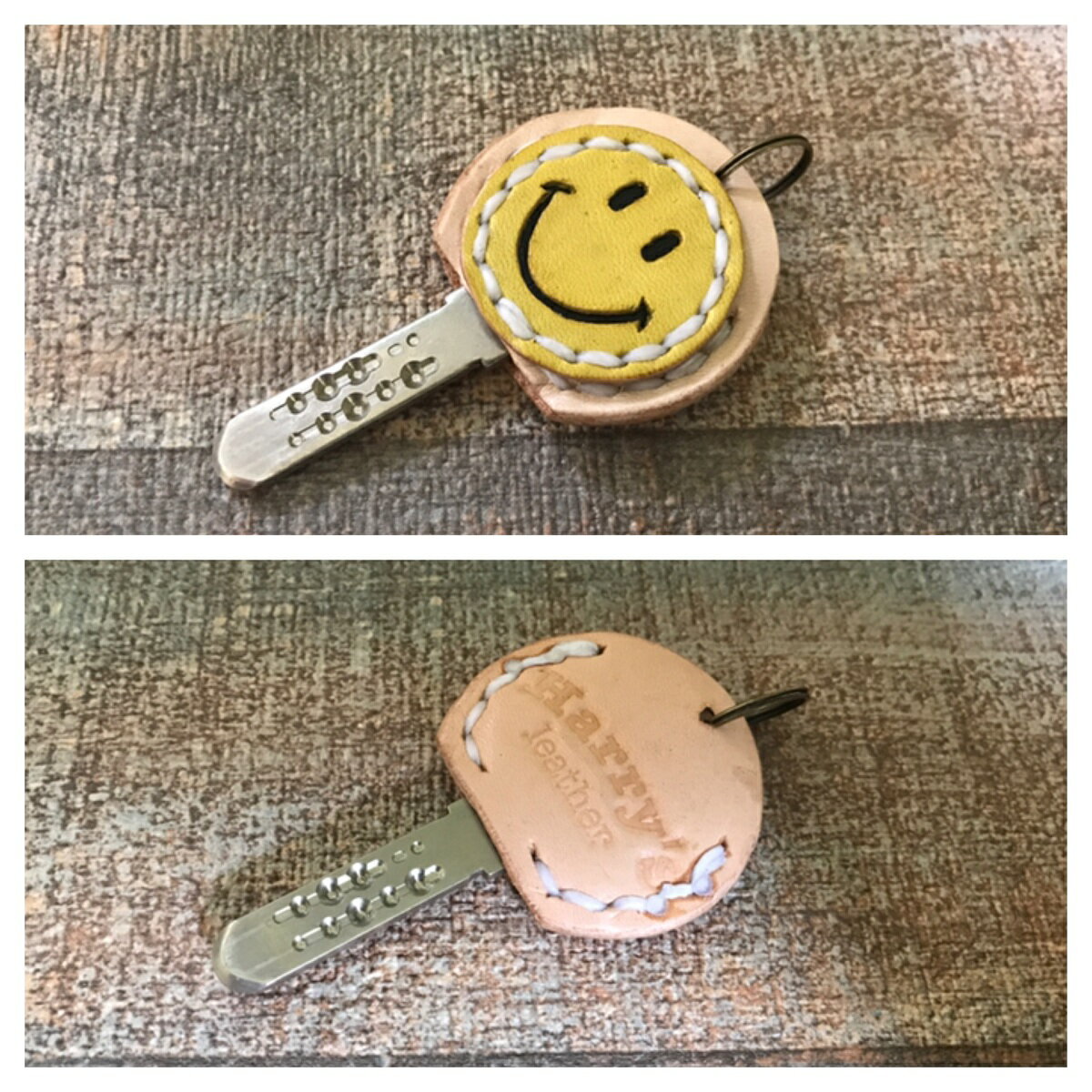 レザースマイルキーカバー 鍵 本革 ニコちゃん スマイル ご自宅などの鍵を可愛らしくカスタムしてみませんか。