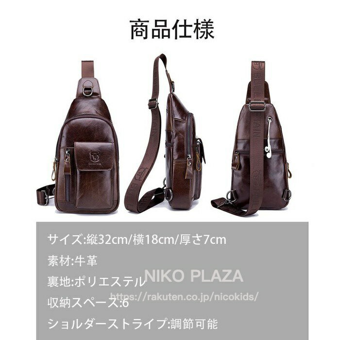 製品仕様 商品名 ショルダーバッグ メンズ カバン 本革バッグ 鞄 斜め掛け ボディバッグ カジュアル 革 ファション レザー ミディアムバッグ 20代 30代 40代 ブラウン 幅17cm サイズ/素材 【サイズ】 「横幅」:18.0cm 「幅」:8.0cm 「高さ」:32.0cm 【収納ポケット】 「前」:ファスナー×2 ボタン×1 「後」:ファスナー×1 「裏」:ファスナー×1 パッチ×1 色 ブラウン その他商品説明 【材質】 表地:本牛革 裏地:コットン ご注意事項 【返品交換についてのご注意】 ・サイズはあくまでも目安であり多少の誤差がございます。