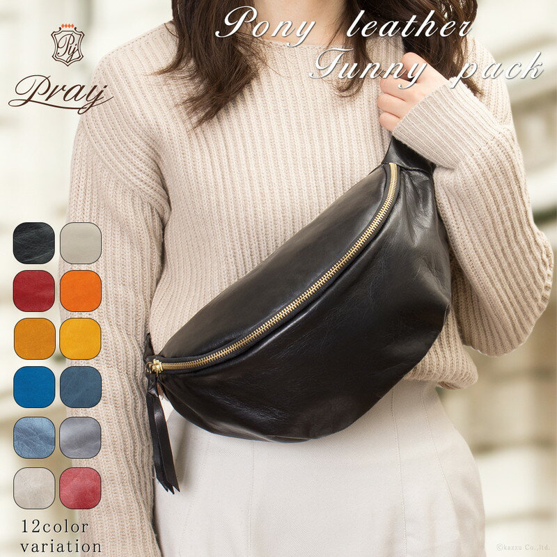 ボディバッグ メンズ 本革 馬革 ファニーパック ブランド Pray プレイ PRBB-1101 ポニーレザー リアルレザー ワンショルダー プルアップ仕様 おしゃれ かっこいい レザー 軽量 カラフル カラバリ豊富 送料無料
