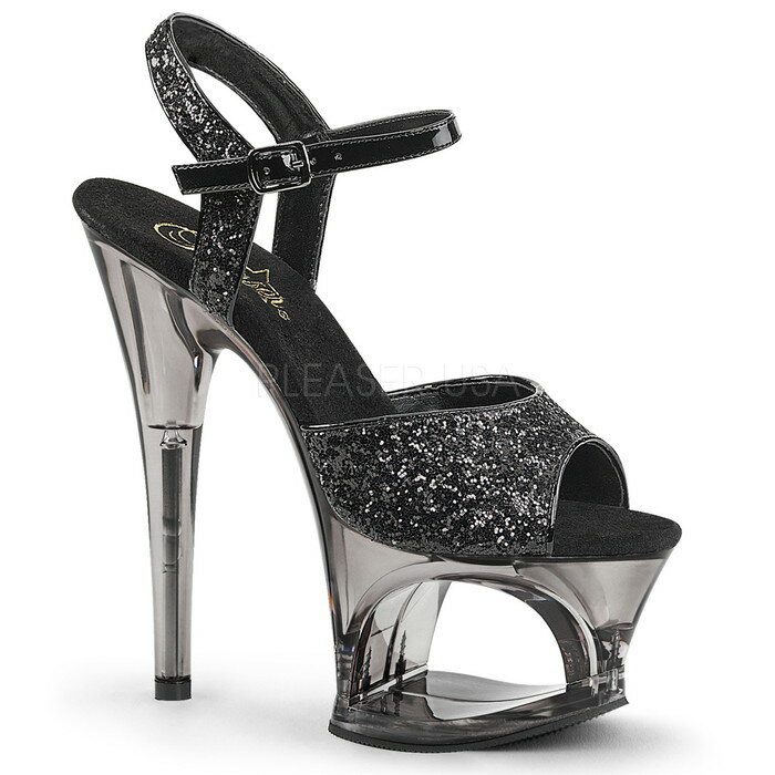 送料無料 Pleaser プリーザー 取寄せ 厚底サンダル 黒(ブラック)のグリッターラメのアンクルストラップとアッパー くり抜きストーム スケルトンカラーの厚底 ハイヒール レディース コスプレ 衣装 ポールダンス 靴 大きいサイズ キャバ MOON-710GT MOON710GT/BG/SMK